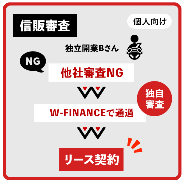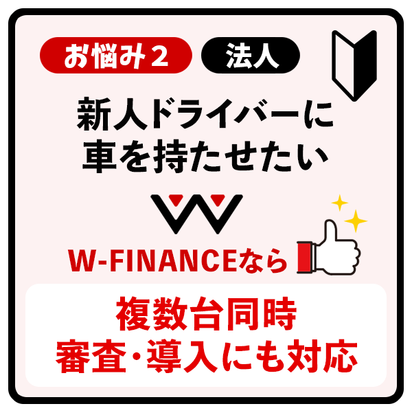 W-FINANCEは、軽貨物運送事業を展開する個人事業主・法人配送会社の両方を対象とした、黒ナンバー特化型の車両リースサービスです。