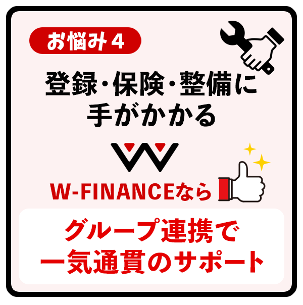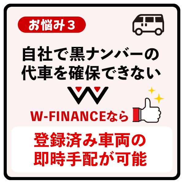 軽バン・黒ナンバーにおける「車両の悩み」は、W-FINANCEがすべて解決します。